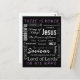 ES GIBT POWER IN SEINEM NAMEN! Jesus ist ein schöner Name für einen wunderbaren Erretter. Es bedeutet "Gott, der gekommen ist, um uns Retten". Hier sind siebzehn Namen, die in der Bibel benutzt werden, um Jesus zu beschreiben. Moderne, weiße und graue Schrift mit stilvollen Schriftart auf schwarz. Benutzerfreundliche Vorlagen zum Hinzufügen (oder Subtrahieren) von Text.