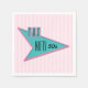 Eine Packung mit 50 Cocktail-Servietten aus weißem Papier mit einem blauen und rosa 50er-Schild mit dem Text "The Nifty 50er" auf weichen rosa-rosa Streifen. Siehe dazu passende Stoffserviette, Küchentücher, Tischset, Tischset und Untersetzer. Sehen Sie sich die gesamte Sammlung von Nifty 50er Napkin im NAHRUNGSMITTEL/BEV an. | Wäsche.