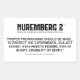 "Es sollten geeignete Vorbereitungen getroffen und angemessene Einrichtungen zum Schutz des Versuchspersonals vor selbst entfernten Verletzungs-, Invaliditäts- oder Todesmöglichkeiten geschaffen werden." Artikel 7 des Nürnberger Kodex 1947 - Aufkleber (schwarzer Text). Unterstützen Sie die internationalen Menschenrechte? Glauben Sie, dass die Menschen ihre Menschenrechte kennen sollten? Die Marke Nürnberg 2™ will jeden Einzelnen über die Wichtigkeit all unserer Menschenrechte informieren. Nürnberg 2™ ist stolz darauf, den Namen des ersten Internationalen Menschenrechtskodexes - des Nürnberger Kodexes 1947 zu erwähnen, der den Weg für die UN-Erklärung der Menschenrechte und andere Gesetze zum Schutz des Einzelnen vor Staat, unternehmerischer und institutioneller Tyrannei geebnet hat. Nürnberg 2™ setzt sich für die Förderung des Internationalen Bioethik- und Menschenrechtsrechts ein, mit direkten Zitaten der wichtigsten Klauseln und Artikel aus Gesetzen, die von allen großen Nationen ratifiziert wurden, wodurch sie weltweit rechtsverbindlich und in allen Ländern rechtsverbindlich sind. Die eklatante Verletzung der Menschenrechtsgesetze durch jeden Staat gilt als "Verbrechen gegen die Menschlichkeit". Diejenigen, die sich gegen die Menschenrechtsgesetze stellen, versuchen, sie zu unterdrücken, oder die das öffentliche Bewusstsein für sie nicht unterstützen, sind nicht besser als diejenigen, die diese Gesetze eklatant verletzen.