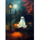 Im ruhigen Herzen eines Herbstparks findet ein sanfter Geist einen Ort der Erholung. Dieser bezaubernde Kunstdruck fängt einen einsamen Geist ein, der eine Bank mit seinem strahlenden Jack-o'-Laterne Begleiter teilt, umgeben von den warmen Farben des Herbstes. Es ist die perfekte Mischung aus süß und süß, ideal, um Ihrem Halloween-Dekor eine Touch magischen, historischen Charmes hinzuzufügen. Lass diesen freundlichen Phantom bringen den knechten Geist des Herbstes in deine Zuhause.