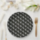 Dieser Geburtstagspapier-Teller ist für den Outdoorsman perfekt. Er kennzeichnen ein Muster der silbernen antlered Rotwildköpfe auf einem Diamantplattenhintergrund.