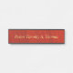 Der Name des Pastors auf dem Blick des roten hölzernen Bildes.