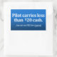Der Pilot bringt weniger als 20 Dollar Bargeld Rechteckiger Aufkleber
