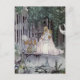 Ein Prinz kniet im Wald neben einem Pool, während sein weißes Pferd im Hintergrund steht. Vintage Illustration von Kay Nielson für "East of the Sun and West of the Moon"