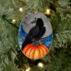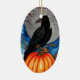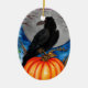 Originelle Malerei von Sandra Gale für die Halloween-Saison mit einem schwarzen Raben auf einem Kürbis. Das schöne Design für Kinder und Erwachsene, um den schönen Halloween-Urlaub zu feiern.