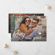 Moderne, elegante Neujahrskarte, die perfekt ist, um Ihre Verlobung oder Hochzeitsfeier zu verkünden. Das Design beinhaltet das Typografie-Skript ''Ring in the new year'' , Foto vorne und hinten und Wünsche aus der Zukunft mr. und Mrs