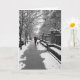Unter dem Dach eines roten Regenschirms führt eine Frau ihren Hund an einem winterlichen, schneebedeckten Tag spazieren. Diese Grußkarte ist vollständig anpassbar und personalisiert.
