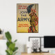 Ein Poster aus dem Ersten Weltkrieg, das einen Soldaten zeigt, der neben einer amerikanischen Fahne stehend ist und einen Bugle bläst.