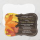 Bracket Stil die geschnitten Süd-Country-Thema Geburtstag Einladungen mit bunten Herbst Blätter über eine rustikale braune Holz Textur Abbildung.