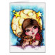 Großes Augenmädchen und ihr Miezekatzekatzenfreund, die den Mond anstarrt