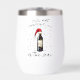 Ein lustiges und fröhliches Weihnachtsdesign zeigt eine Weinflasche, die in festliche Weihnachtsbeleuchtung verpackt und mit einer Weihnachtsmannmütze überragt ist. Der handgeschriebene Text sagt spielerisch: "Es ist der schönste Wein des Jahres." Dieses Design wird auf einer Vielzahl von Produkten angeboten.