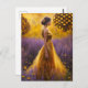 Eine Frau in einem goldenen Kleid in einem Lavendel- und Kronenfeld mit Honigwabenkollektion Sie ist der Beschützer der Bienen AI generierte Kunst