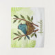 Ein schwarzgefangener Monarch thront in seinem gemütlichen Nest inmitten von grünen Zweigen, umgeben von tropischem Blattwerk. Die ausführliche Abbildung zeigt die weichen blauen Federn des Vogels und die üppige Vegetation der Dschungelbäume Zuhause.