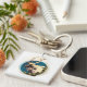 Ein Gemälde eines Bullenelchs mit einem Kuhelch in einem blauen Kreis, der von einem mit grünen Blätter bedeckten Baumzweig gerahmt ist. Sie können eine Hintergrundfarbe für diesen Schlüsselanhänger auswählen. Image Copyright ©2022 Kimberly J Tilley. zazzle.com/store/kimberlyjt