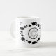 Der jüdische Urlaub Hanukkah. Dieses Schwarz-Weiß-Design zeichnet sich durch den "Star of David" aus. Sterne umschließen den Stern von David in ovaler Form. Die Ecken sind mit Blätter und dem Star of David geschmückt. Auf der Tasse ist "Hanukkah 2014" gedruckt. Diese Tasse sind in einer Reihe von Stilen, Farben und Größen erhältlich.