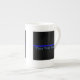 Der symbolische dünne blaue Text auf schwarz Prozellantasse