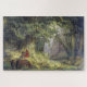 Dieses Design zeigt ein Gemälde des deutschen Künstlers Karl Friedrich Lessing (1808-1880). Es zeigt einen prächtigen Eichenbaum in einem alten deutschen Wald. Der Baum ist tausend Jahre alt. Ein Mann und eine Frau knien in Ehrfurcht vor dem Baum. Das Paar hat seine Pferde aus einem kleinen Fluss neben dem Baum verlassen, der von einem felsigen Hügel aus wächst. Die Blätter des Baumes sind grün mit Blattwerk. Das Originalwerk wurde 1837 gemalt.