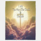 Goldenes Kreuz zwischen flauschigen Wolken mit Typografie-Design.