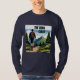 Ein Mann, der die Wege durch Kiefern in Richtung Berge wandert. Coole Grafik für diejenigen, die Liebe, alle Wege wie den Appalachian Trail zu wandern.