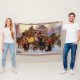 Man kann sich die Stätten und Geräusche der Zeit in diesem historischen The Christmas Coach 1795 Jean Leon G. Ferris Throw Blanket Bild vorstellen. Eine patriotische amerikanische Fahne ist auf der Zuhause im Hintergrund prominent.