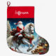 Dieses schöne Design zeigt den Weihnachtsmann, der ein schönes weißes Pferd durch ein Weihnachtswunder reitet.