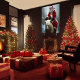 Der Weihnachtsmann reitet im Winter einen Eisbären im Wald. Das ist eine künstlerische KI.