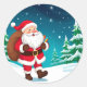 Der Weihnachtsmann geht fröhlich in einem schneesi Runder Aufkleber