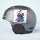 Eine fröhliche Figur mit lebhaften violetten und blauen Roben, die mit aufwändigen Designs geschmückt ist, hält farbenfrohe Geschenke mit Bögen. Die festliche Atmosphäre wird durch schwirbelnde Bänder und funkelnde Ornamente, die den fröhlichen Geist der Weihnachtszeit verkörpern, noch verstärkt.