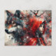 Der Wolf sieht über den kleinen roten Grunge. Postkarte