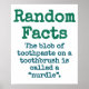 Trivia macht Spaß. Zeigen Sie der Welt, wie geeky Sie sind mit dieser zufälligen trivia-thematischen Tatsache: Der Klecks Zahnpasta auf einer Zahnbürste nennt sich "Nurdle". Ideal für Trivialfans.