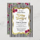 Bandes noires et blanches de charme et roses rouges avec cadre et police en feuille dorée. Idéal pour une fête de Fête des mariées Derby ! Faites habiller vos amis en style derby avec de grands casquettes et des seins! Flaux feuille d'or