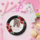 Derby Party Pferd Reittier Party personalisierte Teller Vorlage. Einfaches, klassisches Pferdportrait mit rote Rosen-Blume.