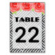 Tischnummern mit einer rote Rose oben auf einem Hintergrund aus schwarz-weiß gestapelten Streifen. *TIPP: ÄNDERN SIE DIE TISCHNUMMER und geben Sie dann in Ihren Warenkorb für jede Nummer, die Sie gewollt, um zu bestellen. PASSENDE Artikel in unserem Geschäft.