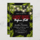 Invitations de fête estivale avec un arrière - plan noir élégant qui peut être changé à n'importe quelle couleur, des lumières scintillantes, des feuilles de palmiers tropicaux d'été, un néon rouge et blanc qui dit "dernier appel avant l'automne", et un modèle de texte moderne qui peut facilement être personnalisé.