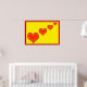 Quatre coeurs rouges heureux sur arrière - plan jaune. Cadre en rouge.