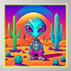 Eine coole Alien in einer Wüstenlandschaft, umgeben von Kakteen und einem pulsierenden Sonnenuntergang. Diese lustige und farbenfrohe Illustration ist perfekt für Fans von Science Fiction und Pop (Dieses Design wurde mit KI erstellt). Bestellen Sie noch heute und Embrace the Joy of Shopping!