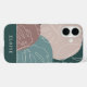 Modernes bohisches Design mit einem Hintergrund Bio Formen in abgestuften Tönen von Wüstenton und Fichtengrün, überlagert mit tropischen Monstera-Blatt Illustrationen. Personalisieren Sie das Programm mit einem Namen oder Monogramm unten.