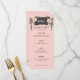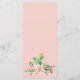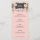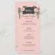 Ce menu de fleurs désertiques présente des fleurs roses et de la verdure de part et d'autre d'une boîte noire incurvée avec le mot "Menu". Tous les détails importants du menu mariage peuvent être modifiés. Les couleurs sont le vert, le rose, le blanc et le noir.