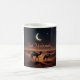 Ein atemberaubendes Eid Mubarak Coffee Tasse Design mit Kamelen, die durch goldene Wüstendünen unter einem Halbmond und Sternenhimmel spazieren. Dieses ruhige und traditionelle Design vereint das Wesen von Eid in einem zeitlosen arabischen Rahmen und eignet sich ideal für festliche Dekorationen, Grußkarten oder Geschenke.