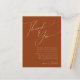 Cette carte de remerciement de table en terre cuite fantaisiste pour le désert est parfaite pour votre mariage simple et rustique aux tons terreux beige et terre cuite de l'Ouest. La palette de couleurs bohème neutre et terreuse est vintage sud-ouest avec une touche rétro moderne. L'écriture est une calligraphie manuscrite minimaliste délicate qui est assez élégante et romantique. Le produit est personnalisable et comporte de nombreux espaces vierges, vous pouvez donc ajouter vos propres graphiques ou images si vous souhaitez le personnaliser ! N'hésitez pas à poser des questions sur la conception de tout produit ; nous sommes ravis de vous aider !