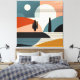 Eine abstrakte Landschaft in einer Wüstenlandschaft mit Linien und Formen in Brauntönen, Orange, Türkis, Beige, Bräune und Schwarz.