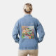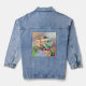 Cette veste rétro en jean dispose d'un bus de camping emblématique, garé dans le désert au milieu des cactus et d'une variété de vases avec des plantes. Ces bus de camping ont eu une grande influence sur les mouvements de contre-culture des années 60. Cela ferait un grand cadeau à votre femme, petite amie ou fille qui a grandi pendant cette période.