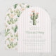 Invite your friends and family to your desert wedding with this beautiful monogram cactus invitation. This invitation has a watercolor image of a cactus with pink blooms on a pink and white striped background. Colors used include, olive green, light pink and yellow.