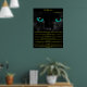 The full Desiderata by Max Ehrmann: Go placidly amidst the noise and haste... Featuring a black cat with green eye looking at you. With yellow text and a black back ground.