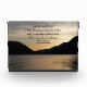 Akryllischer Foto zur Ausstellung, der das landschaftliche Foto eines dramatischen Sesununtergangs und der Silhouetten der Berge zeigt, sowie inspirierende Verse aus dem beliebten Gedicht Desiderata, geschrieben von Max Ehrmann. Macht ein nachdenkliches Geschenk für Familie und Freunde!