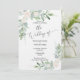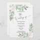 Cette aquarelle est entièrement modifiable et prête à entrer vos informations. Les fleurs sont d'une couleur blanche rousse, recouvertes d'eucalyptus boisés et de fougères. Customisez la forme du papier, le type de papier et tout le texte.