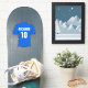 Autocollant de football. Design de maillot de football en bleu. Personnalisé avec votre choix de nom et de numéro. Autocollant d'ordinateur portable. 8 x 8 pouces.