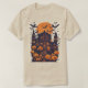 Le design présente une forêt hantée la nuit, remplie d'arbres tordus et sans feuilles qui donnent une ambiance sinistre. Parsemés à travers le sol, les lanternes crêpes brillent, leur lumière sinistre ajoutant une lueur orange inquiétante à la scène. Des apparitions de fantômes flottent au milieu des arbres, créant une atmosphère surnaturelle. Une pleine lune illumine l'arrière - plan brumeux, avec des chauves-souris volant à travers sa surface, rehaussant le cadre éffrayant. La palette de couleurs se compose principalement de noir, d'orange et de blanc, donnant au design un look Halloween classique avec une touche moderne et artistique. Parfait pour un T-shirt, ce design saisit l'essence effrayante d'Halloween.