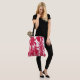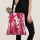 Ladys-Tasche in einem hellroten und weißen Palmenblattdesign. Attraktive natürliche Baumstruktur Silhouette Muster. Das Bild ist fett und besteht aus roten und weißen Palmen.