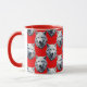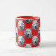 Weißer Wolfskopf Nahtlose Wiederholung Muster Design auf rotem Hintergrund